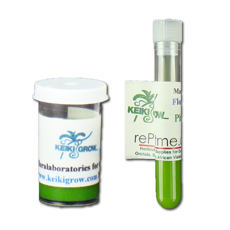 We are happy to offer this miraculous cloning product that is both fun and effective for "making" new orchids. Keikis are baby orchids and this formula makes it easy to create a new keiki either from the base or from a node on a bloom spike ( more typical ). The new baby will be genetically identical to the parent or source plant, and it is about the simplest way we know of to get a new baby just like the original.