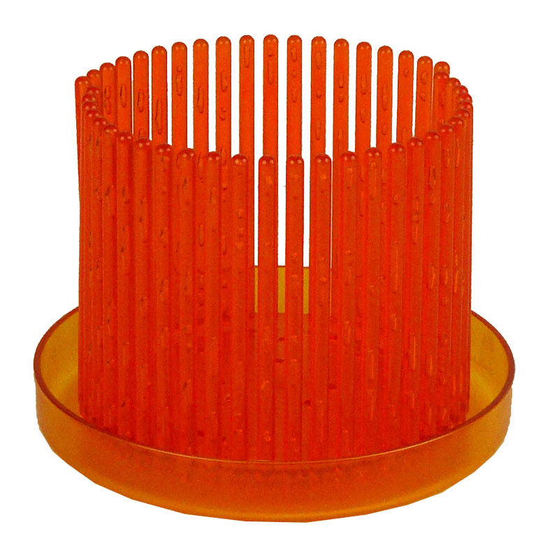 What makes these pots unlike any others is their design. There are no horizontal bars, holes or other obstructions on the sides that prevent the roots from being lifted out of the pot. At 5.25" in diameter it is a great size for many orchids and it comes with a detachable drip tray. The 47 upright tines are smooth rounded high quality UV resistant plastic and each one flexes slightly in any direction pushed. This means that the root system of the plant has the ability to expand in a way traditional pots won't allow because their sidewalls won't yield as the Carousel's will.