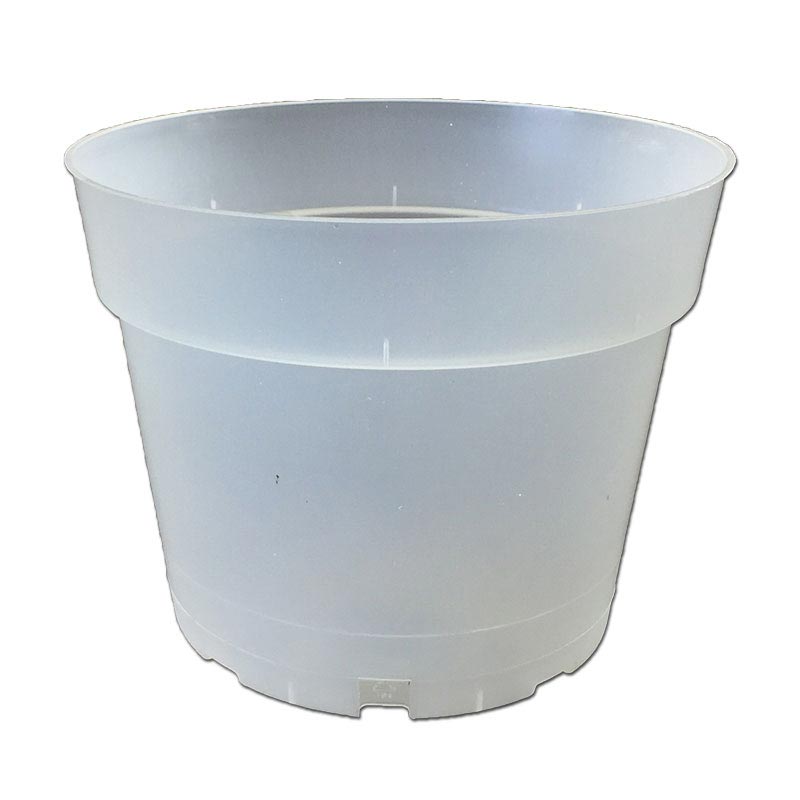 Our 6.5" Rigid Clear Plastic Pot has 4 drainage holes and 4 side ports in a double drainage pattern. Made with a nice wide rim at the top for holding and transporting.