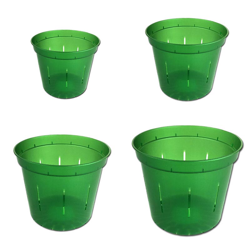 Green Emerald Slotted Pot - 3" Green Emerald Slotted Pot - 4" Green Emerald Slotted Pot - 5" 6" Green Emerald Slotted Clear Orchid Pot Growers Assortment of 4 Green Emerald Slotted Orchid Pots