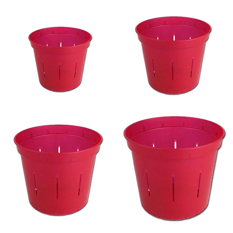 Ruby Red Slotted Pot - 3" Ruby Red Slotted Pot - 4" Ruby Red Slotted Pot - 5" 6" Ruby Red Slotted Clear Orchid Pot Growers Assortment of 4 Ruby Red Slotted Orchid Pots