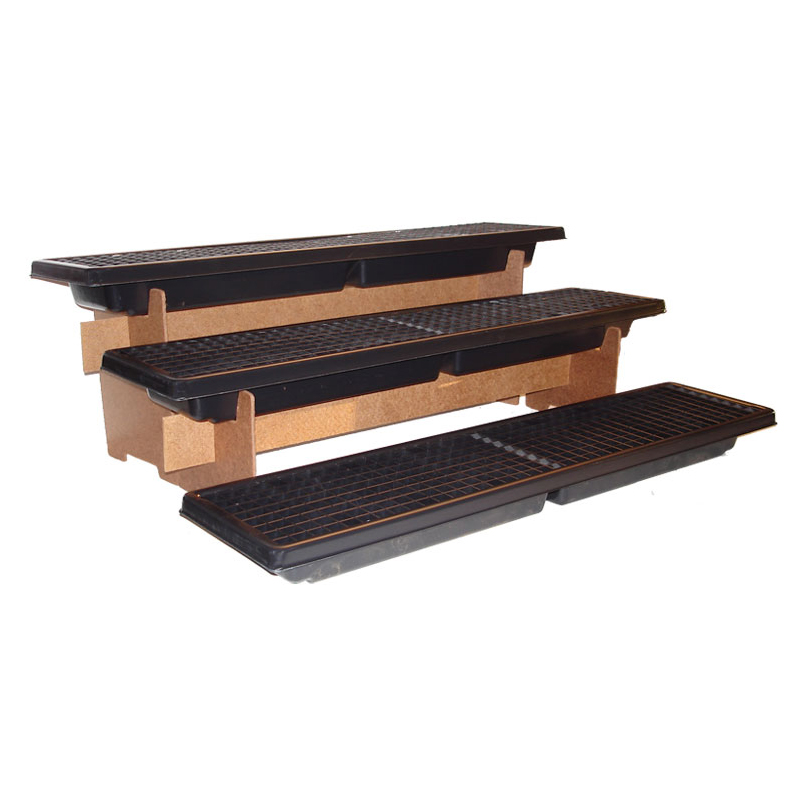 We are delighted to offer the 3 Tray Stair Step Kit which comes with an easy to assemble (no tools) tiered pair of stands that perfectly elevates two of the three included Slim Dual Grate Humidi-Grow Humidity Trays. You get two sturdy stands and three black trays in this Kit and the result is a graduated stair step of three levels of trays and bonsai! Use as a display and/or a way to use vertical space to get plants more light and air flow. Beautiful and functional, the Kit provides the humidity your plants need and a terrific way to display them to their fullest. The stands themselves are made of durable pressboard and the trays are the same famous Humidi-Grow trays we sell in four sizes (Slim like the 3 in this Kit, Single, Twin, and Quad).