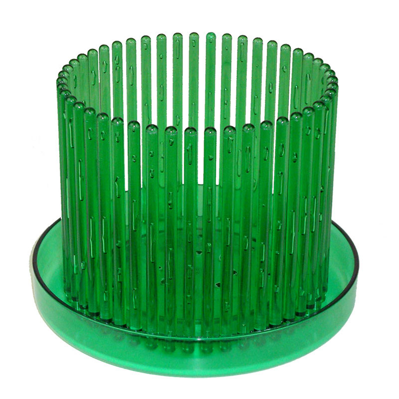 What makes these pots unlike any others is their design. There are no horizontal bars, holes or other obstructions on the sides that prevent the roots from being lifted out of the pot. At 5.25" in diameter it is a great size for many orchids and it comes with a detachable drip tray. The 47 upright tines are smooth rounded high quality UV resistant plastic and each one flexes slightly in any direction pushed. This means that the root system of the plant has the ability to expand in a way traditional pots won't allow because their sidewalls won't yield as the Carousel's will.
